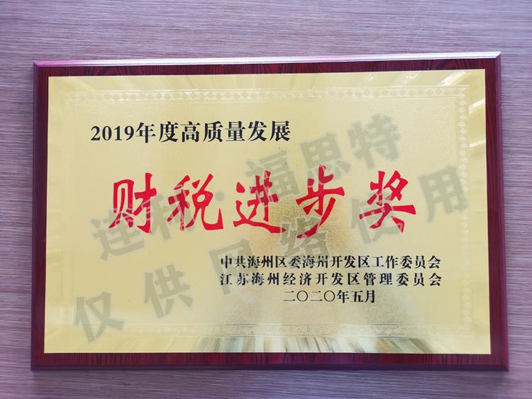 會議觀看了海州開發(fā)區(qū)2019年工作紀(jì)錄片,宣讀2019年度企業(yè)特殊貢獻獎、財稅貢獻獎、財稅進步獎、企業(yè)成長獎、安全生產(chǎn)主體責(zé)任落實獎等表彰決定,并舉行頒獎儀式。其中連云港連利·福思特表業(yè)有限公司榮獲2019年度高質(zhì)量發(fā)展“財稅進步獎”。